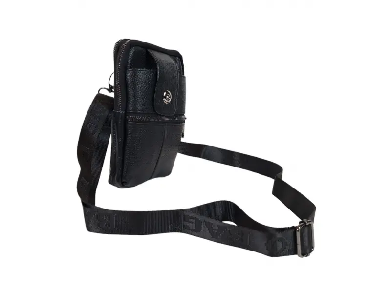 Малка мъжка чанта с отделение за телефон - Мъжка чанта от еко кожа. - Две основни отделения с цип. - Малък вътрешен джоб без цип. - Преден джоб с цип. - Преден джоб за телефон с магнитно закопчаване. - Възможност за закачане на колан. - Дълга регулираща се дръжка.