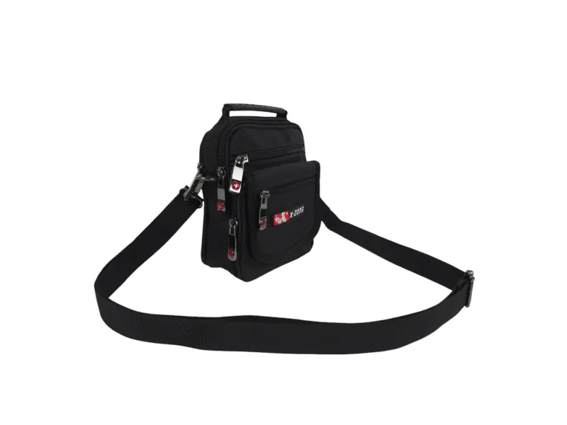Ежедневна мъжка чанта за през рамо - Мъжка чанта от качествена материя. - Две основни отделения с цип. - Три предни джоба с цип. - Възможност за закачане на колан. - Дръжка за носене в ръка. - Дълга регулираща се дръжка.