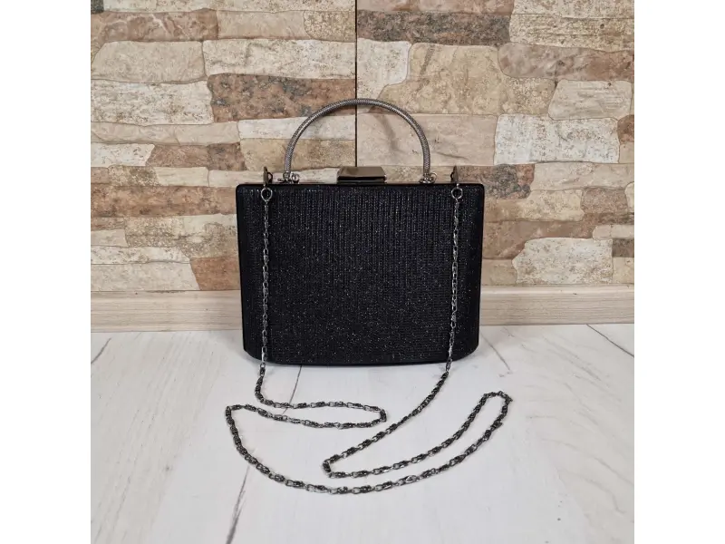 Луксозна дамска чанта за специално събитие - Официална дамска чанта с едно отделение. - Отваряне и затваряне с механизъм. - Метален кант. - Дръжка за носене в ръка. - Дълга дръжка тип верижка.