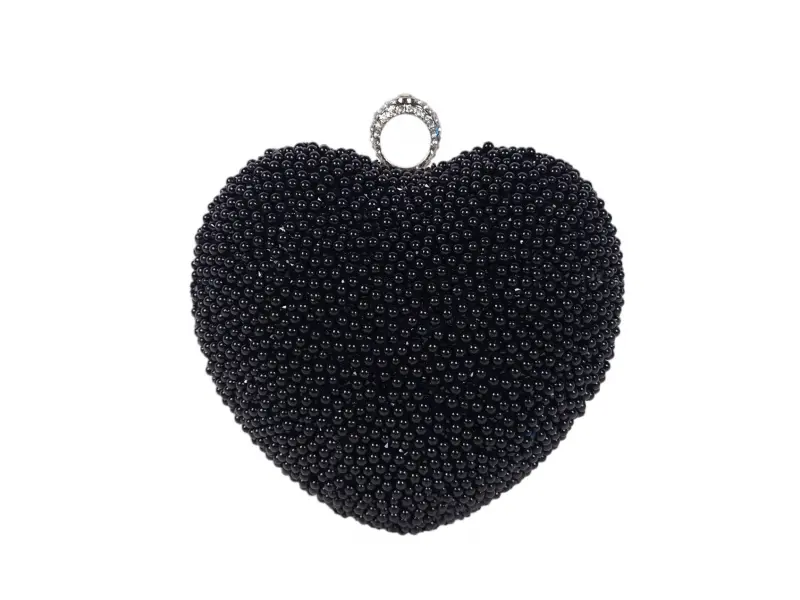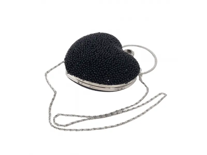 Черна официална чанта с перли - сърце | Дамски чанти (ePazar.bg)