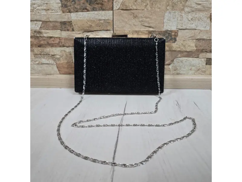 Стилна дамска чанта за официално събитие - абитуриенски бал, сватба. Красива елегантна чанта в черен цвят с едно отделение с механизъм и дълга дръжка тип верижка.
