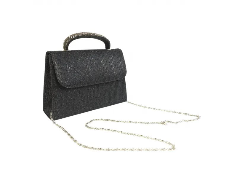 Черна официална абитуриентска чанта с уникален и стилен дизайн – перфектният аксесоар за вашия специален ден. Модерна елегантна дамска чанта изроботена от качествени материали.