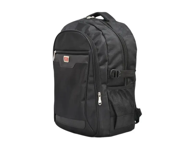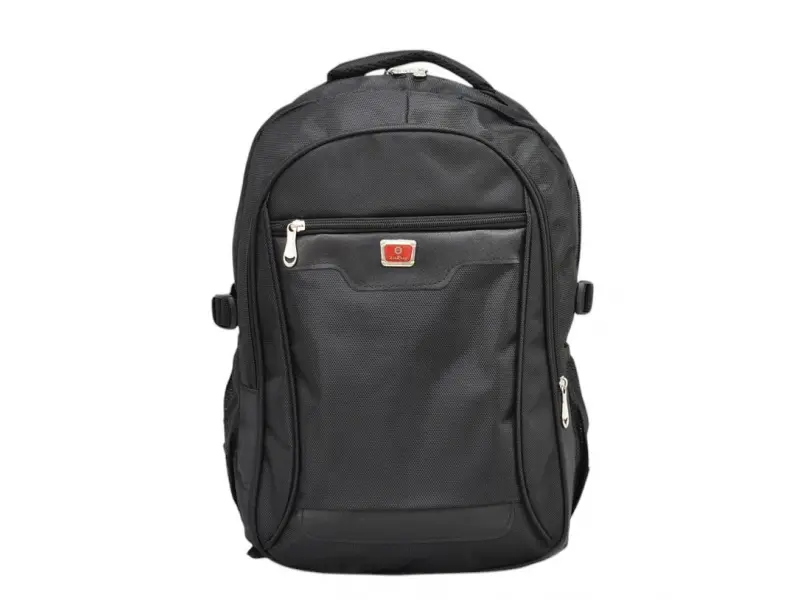 Качествена мъжка раница от плат. Раница за лаптоп с удобни отделения и здрави ципове. Черна раница с удобен гръб, дръжка за носене в ръка и регулиращи се презрамки.