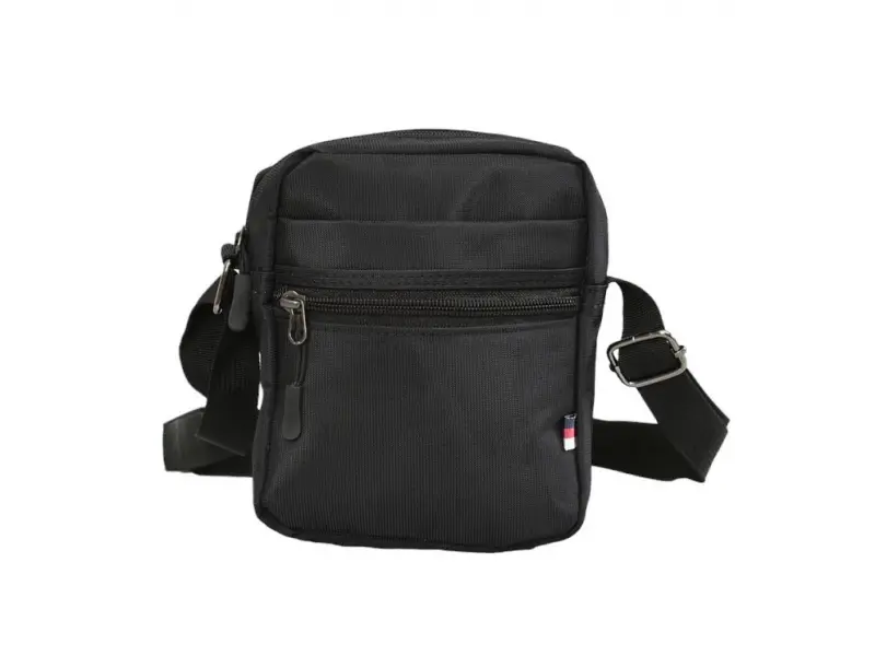 Малка спортна чанта за през рамо - Мъжка чанта от качествена материя. - Едно основно отделение с цип. - Преден джоб с цип. - Преден джоб без цип. - Заден джоб с цип. - Вътрешен джоб с цип. - Дълга регулираща се дръжка.