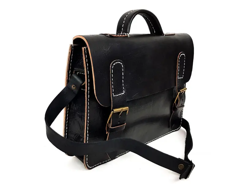 Черно бизнес куфарче - Мароко. Мъжка черна чанта изцяло от естествена кожа , внос от Мароко. Черна бизнес чанта - куфарче , тип отваряне на капака с колани.