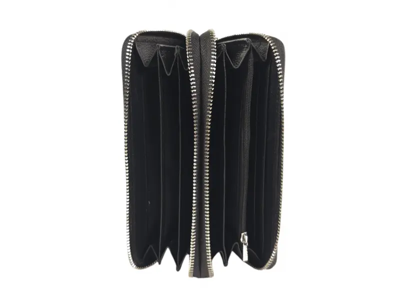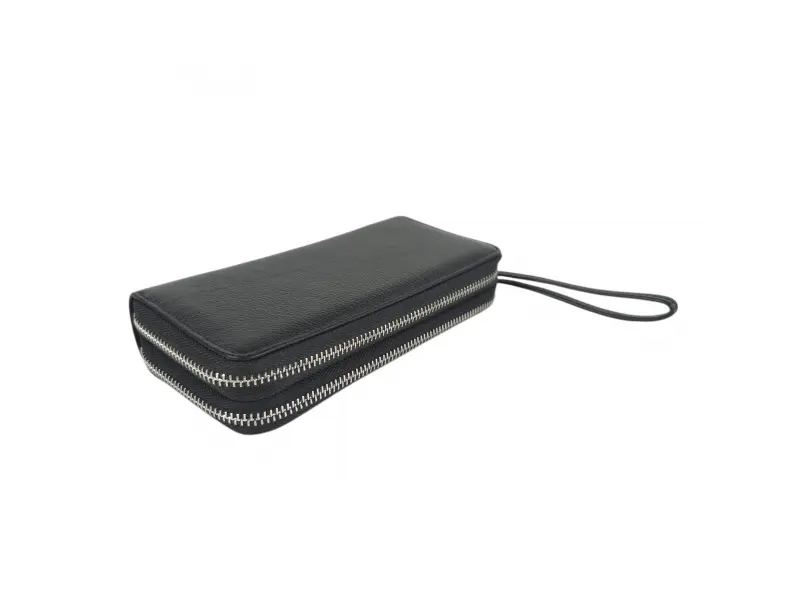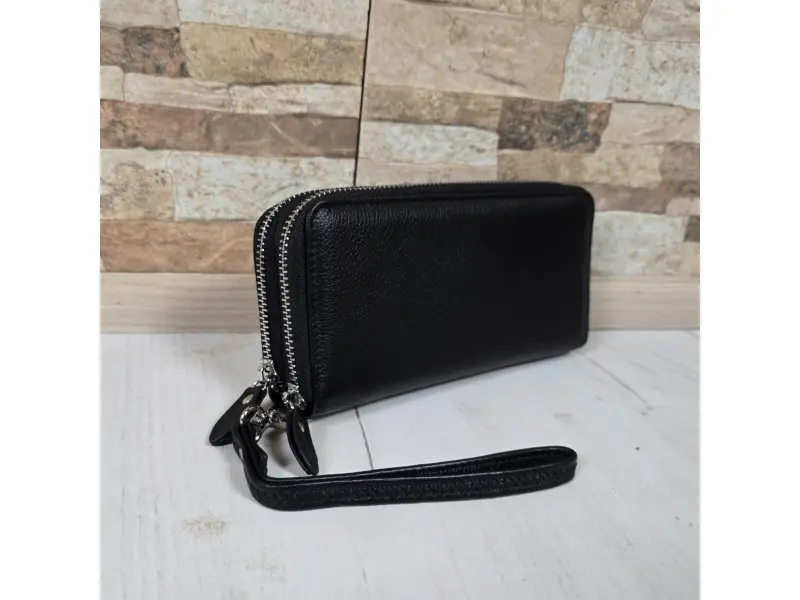 Черно дамско портмоне с два ципа, голям модел с много отделения за карти, отделения за банкноти, място за монети. Дамско портмоне от качествена естествена кожа с два ципа и дръжка за ръка - ePazar.bg
