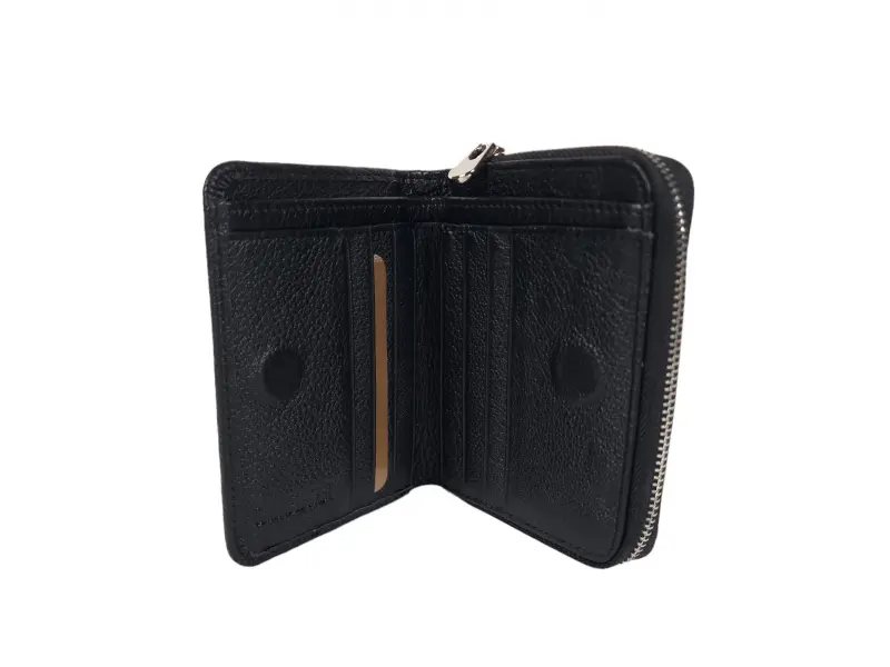 Кожено дамско портмоне - Дамско портмоне от естествена кожа. - Закопчаване с магнит. - Отделения за карти. - Отделения за банкноти. - Външен монетник с цип. - Заден джоб с цип.