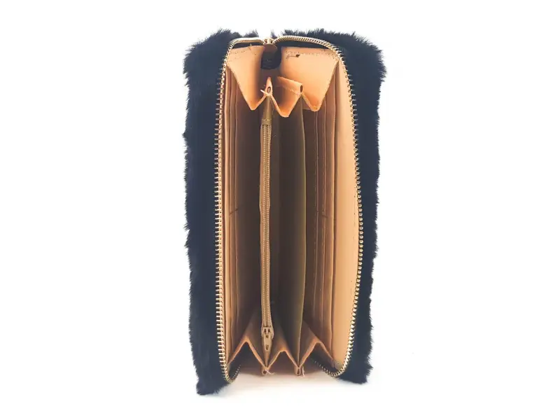 Черно портмоне с пух. Дамско портмоне от онлайн магазин ePazar.bg. Интересно дамско портмоне с цип в златен цвят. Черно плюшено портмоне.