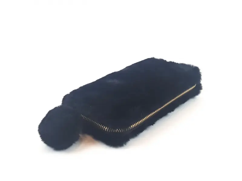 Пухената топка е висяща и допълва черния плюшен дизайн на портмонето.