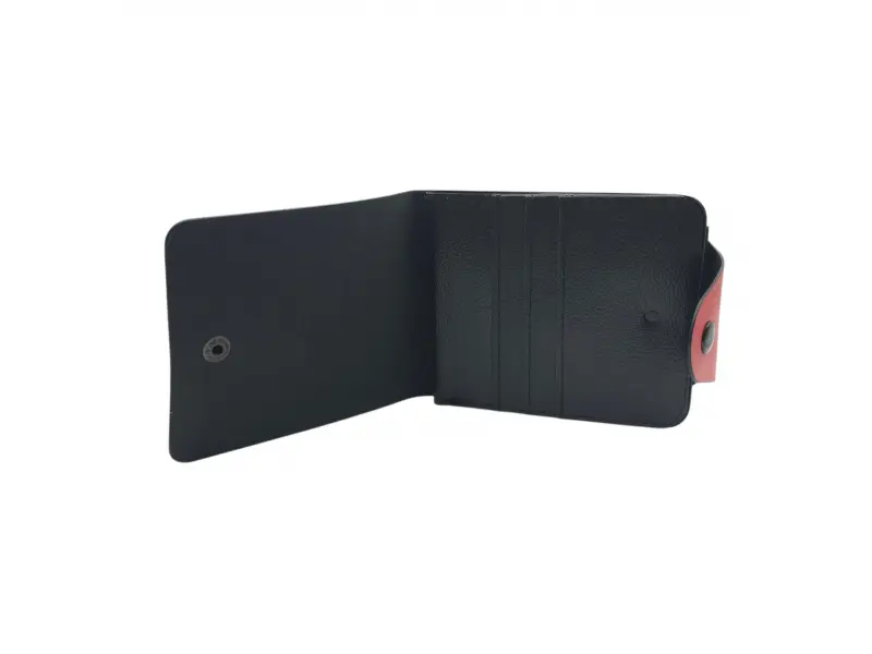 Портфейлът разполага с отделение за банкноти, слотове за карти и лични документи, както и монетник с копче и цип.