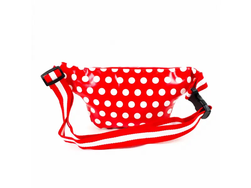 Червена детска чанта за през кръста. Червена детска чанта за през кръста от качествена еко кожа. Паласка с две джобчета затварящи се с цип и регулиращ се колан.