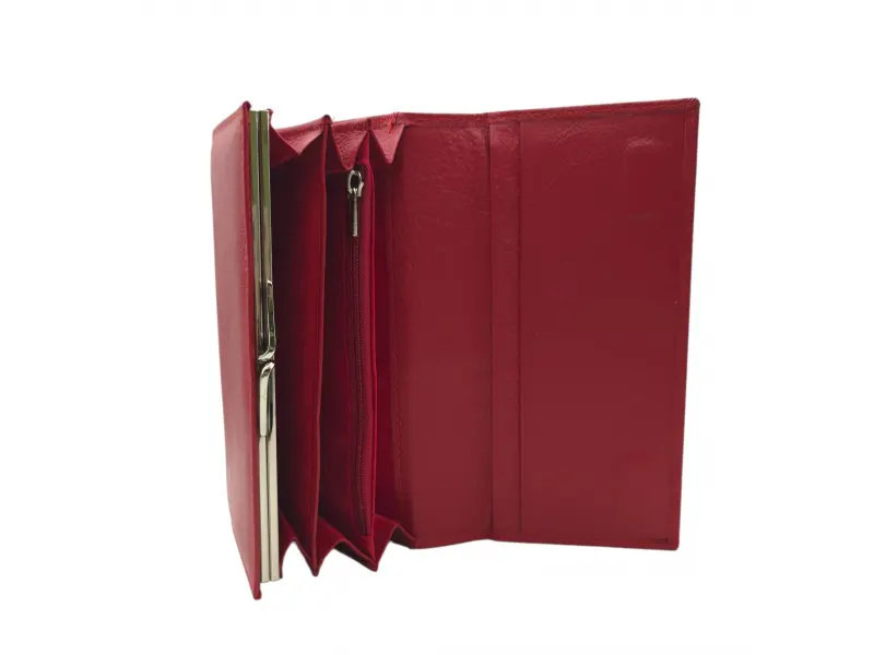 Голямо дамско портмоне - Дамско портмоне от естествена кожа. - Затваряне с магнит. - Отделения за карти. - Отделения за банкноти. - Монетник с щипка. - Вътрешно отделение с цип. - Външно отделение за карти и документи.
