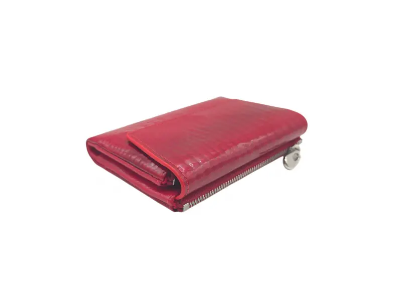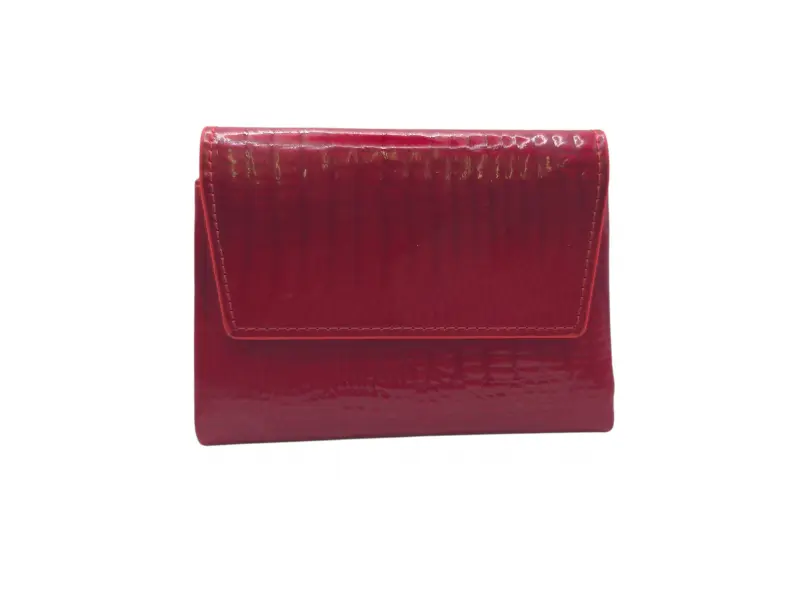Червено дамско портмоне от естествена кожа и лак. Средно дамско портмоне с отделения за банкноти, слотове за карти и лични документи и монетник с цип. Стилно дамско портмоне с интересен дизайн.