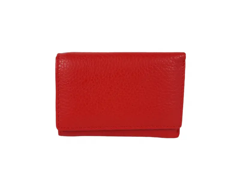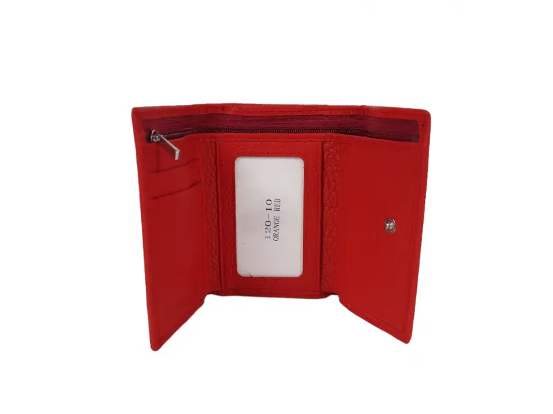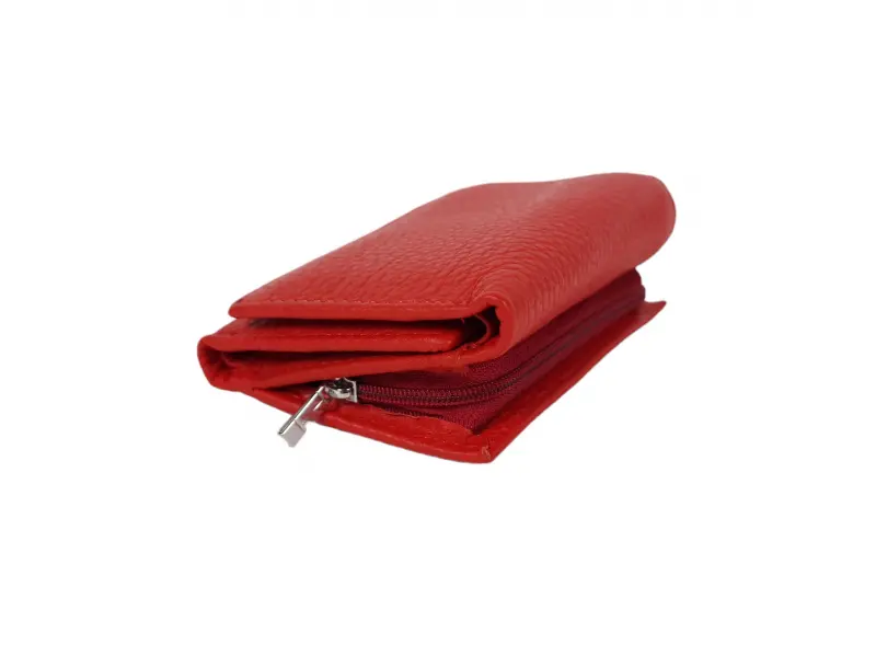 Кожено дамско портмоне - Дамско портмоне от естествена кожа. - Закопчаване с копче тик-так. - Отделения за карти. - Отделение за банкноти. - Отделение с цип. - Външен монетник с цип.