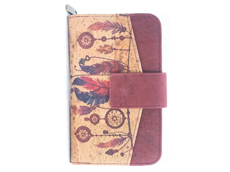 Червено корково портмоне - Ind. Нов модел корково портмоне в индиански мотиви. Удобен червено - натурелен корков цвят с много слотове за карти, преграда за банкноти - ePazar.bg