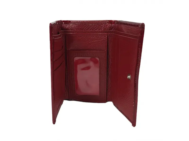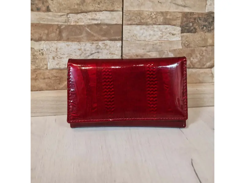 Удобно дамско портмоне - Червено портмоне от естествена кожа и лак. - Отделения за карти и лични документи. - Отделение за банкноти. - Монетник с цип.