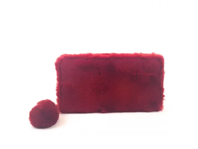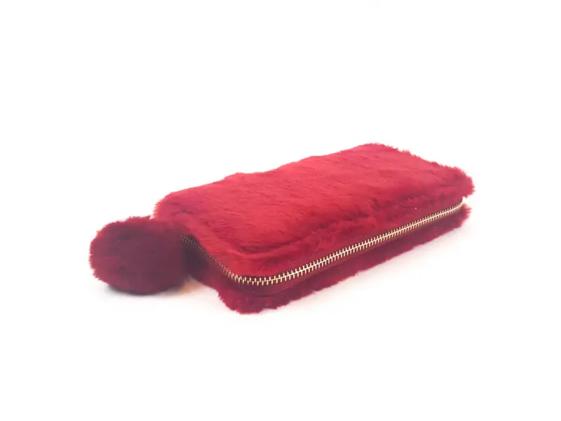 Червено портмоне - пух. Дамско портмоне от ePazar.bg от еко кожа с червен пух. Стилно дамско портмоне със златист цип с вътрешни прегради за банкноти и документи.
