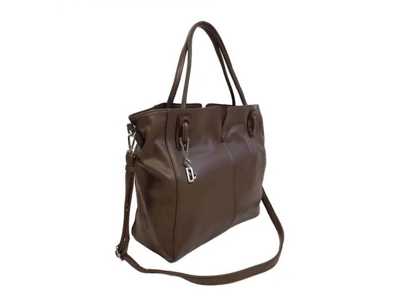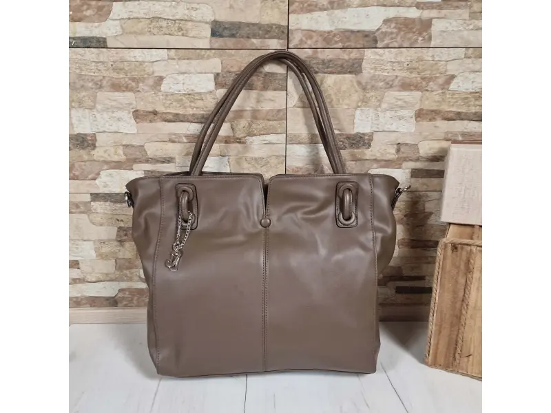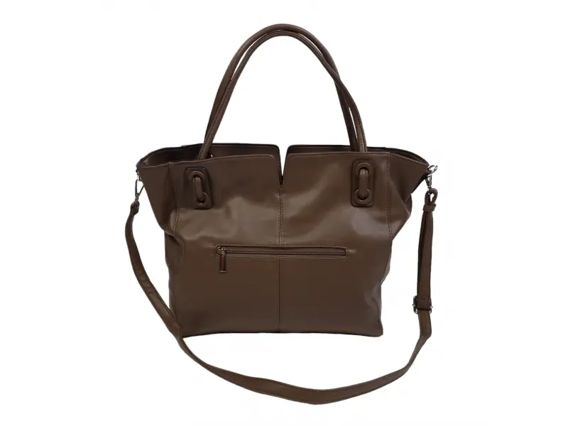 Голяма дамска чанта - Дамска чанта от еко кожа. - Едно основно отделение разделено на две от джоб с цип. - Малък вътрешен джоб с цип. - Отделение за телефон. - Заден джоб с цип. - Удобни дръжки за носене. - Дълга регулираща се дръжка.