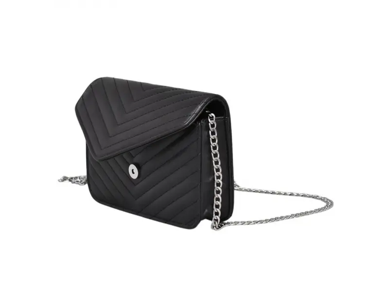 Малка черна дамска чанта - Малка дамска чанта от еко кожа. - Едно основно отделение с цип и магнитно закопчаване. - Дръжка тип верижка.