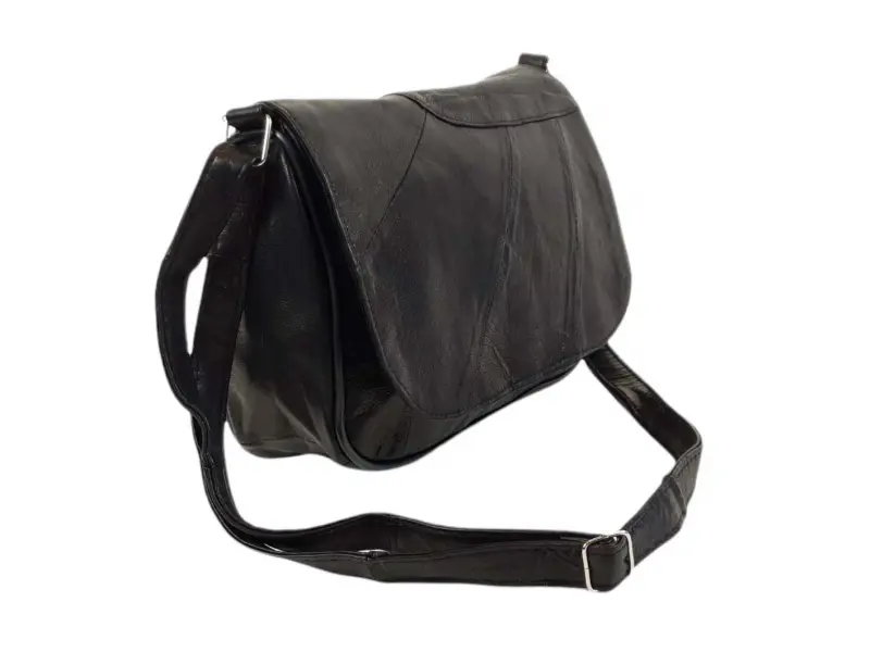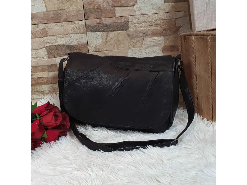 Качествена дамска чанта от агнешка естествена кожа. Малка чанта с едно основно отделение с цип и магнитно закопчаване, малко вътрешно джобче с цип, преден джоб под капака с цип и заден джоб с цип. Чанта с удобна дълга регулираща се дръжка.