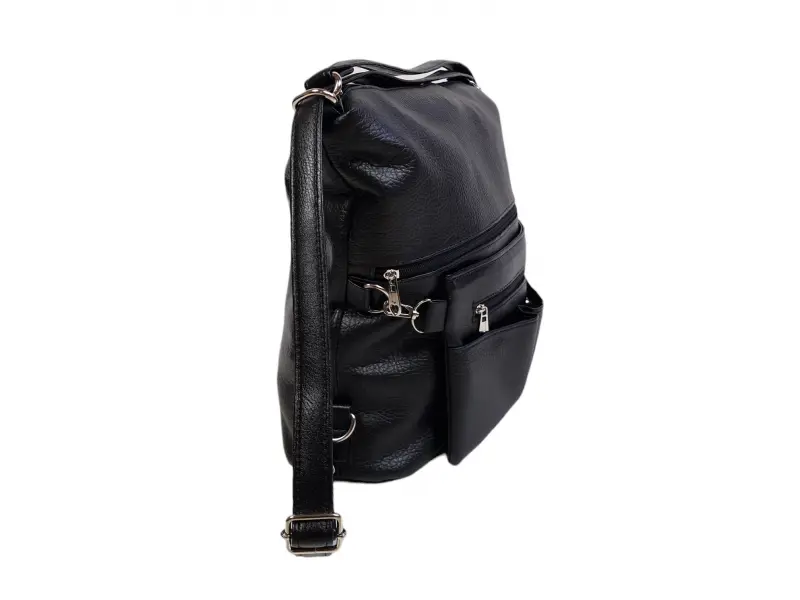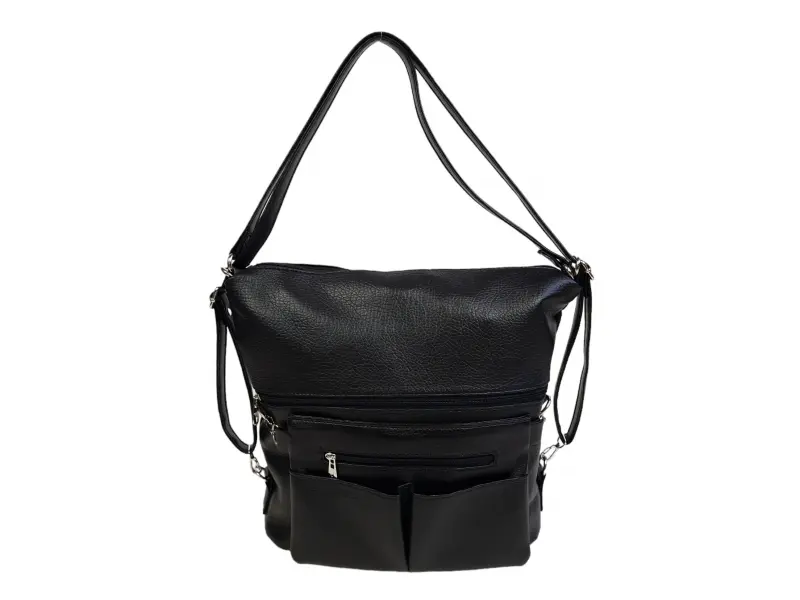 Нов модел чанта - раница - Дамска чанта от еко кожа, която може да се носи като раница. - Едно основно отделение разделено на две от джоб с цип - Вътрешно джобче с цип. - Отделение за телефон. - Два предни джоба с цип. - Два предни джоба затварящи се с магнит. - Задно джобче с цип. - Възможност за сваляне на предната част. - Дълга регулираща се дръжка.
