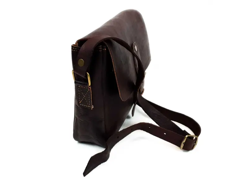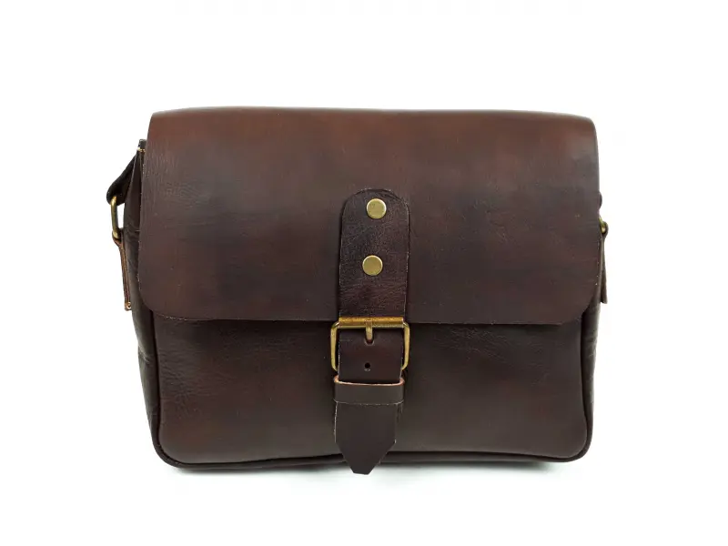 Дамска чанта в тъмно кафяв цвят. Тъмно кафява дамска чанта от естествена кожа произведена в Мароко. Дамска чанта с едно голямо вътрешно отделение и заден джоб с цип.