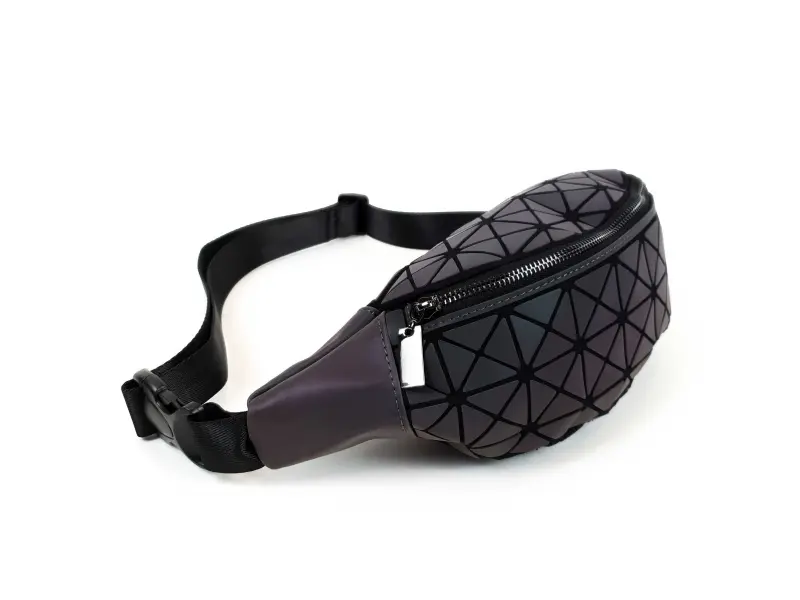 Актуална дамска чанта за през кръста в хамалеонов цвят. Интересна чанта за през кръста с едно отделение затварящо се с цип, вътрешно малко джобче с цип и регулиращ се колан от полиестер.