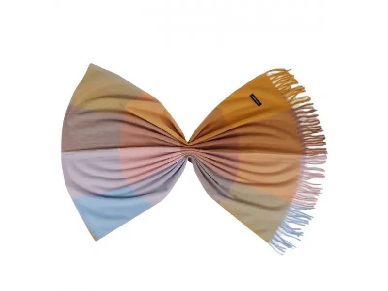 Мек и удобен дамски шал с интересно съчетание на цветовете с усещане на кашмир. Дамски шал подходящ както за студените есенни дни така и за зимния сезон.