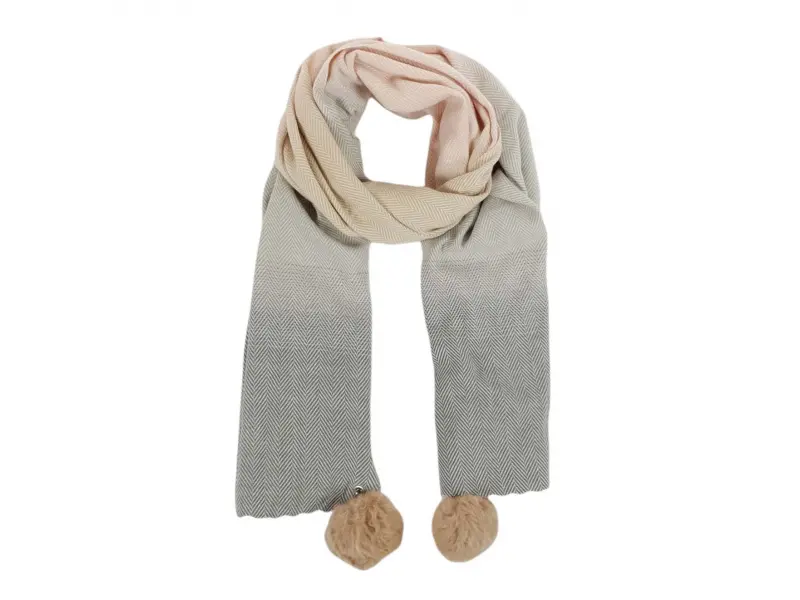 Мек и удобен дамски шал подходящ както за студените есенни дни така и за зимния сезон. Дамски шал с интересно съчетение на цветовете с 65% viscosa и 35% вълна. Шал с пухени топки, който могат да се свалят, закрепени са с безопасна игла.