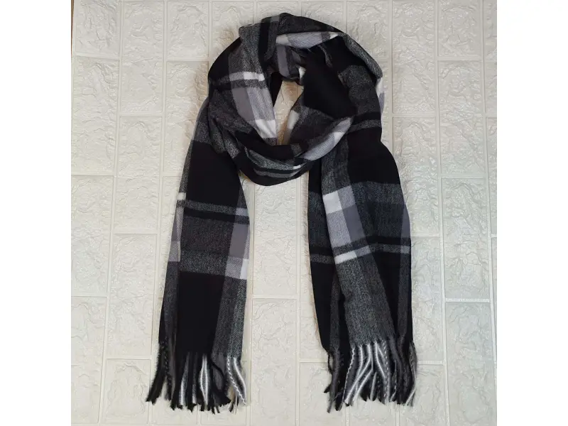 Шалът е мек и удобен с усещане на кашмир, което го прави много приятен на допир.