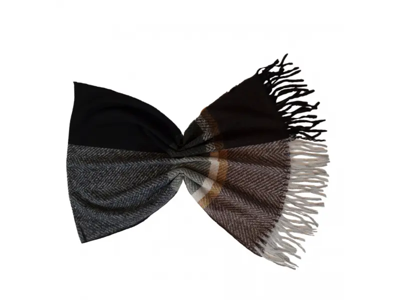 Шалът е мек и удобен с усещане на кашмир, което го прави подходящ за студено време.
