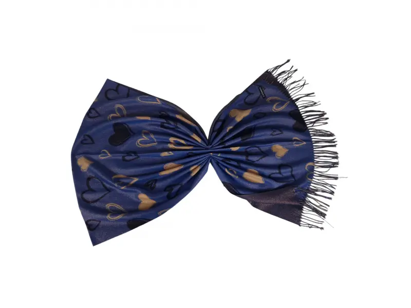Син дамски шал със сърца - Есенно-пролетен. - Мек и удобен. - Шал с усещане на кашмир.