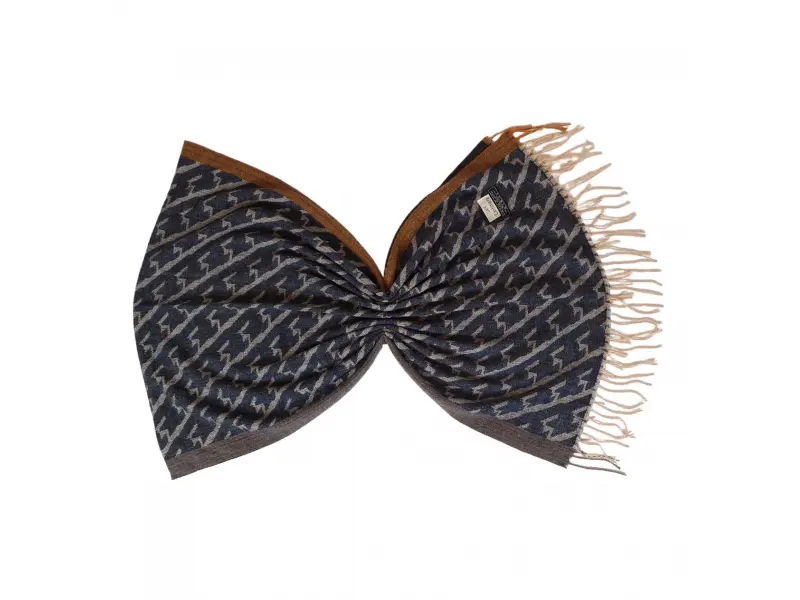 Шалът е двулицев, което позволява различен външен вид от двете страни.