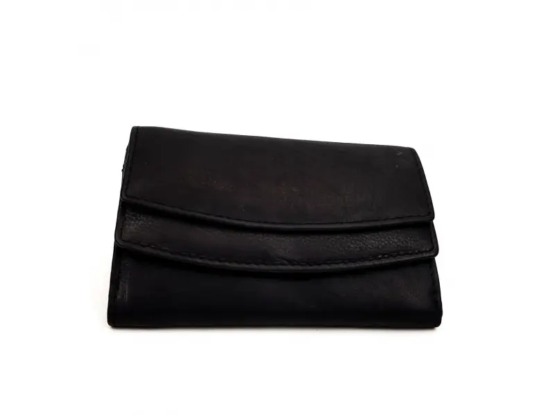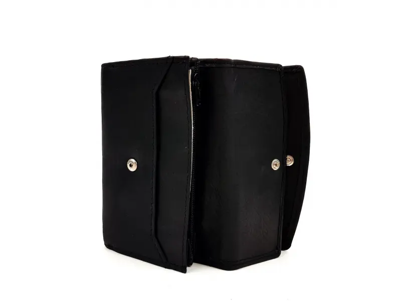 Дамско компактно портмоне - черно. Удобно черно дамско портмоне от естествена кожа. Черно портмоне от качествена мека на допир кожа , внос от Индия - ePazar.bg