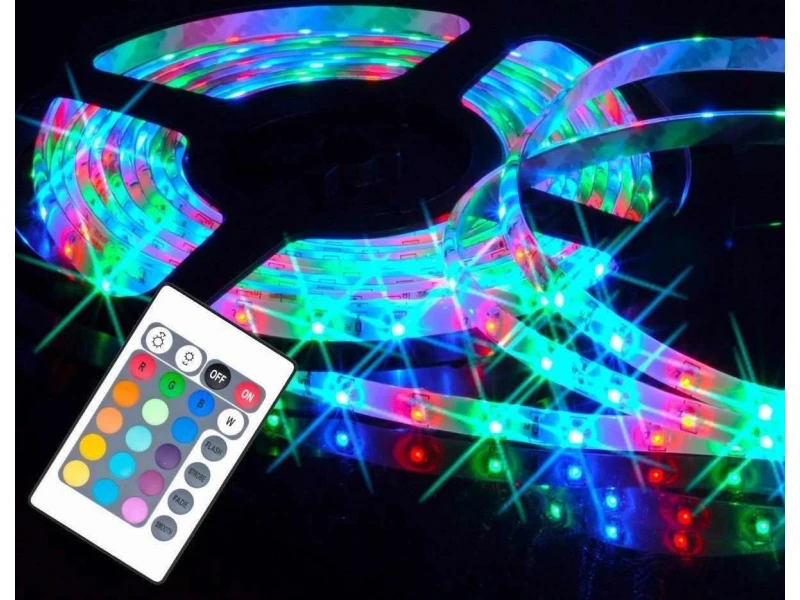 5м.,Диодна лента с контролер и дистанционно, RGВ ЧЕРВЕНО, ЗЕЛЕНО, СИНЬО Влагоустойчивост, Силиконово покритие