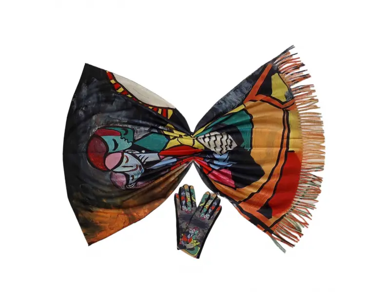 Двулицев дамски шал и ръкавици с картина на Пикасо