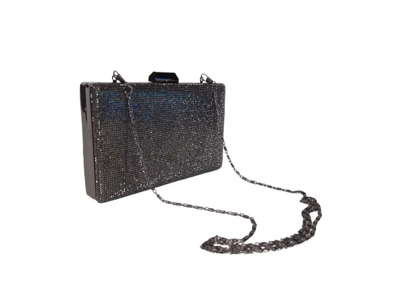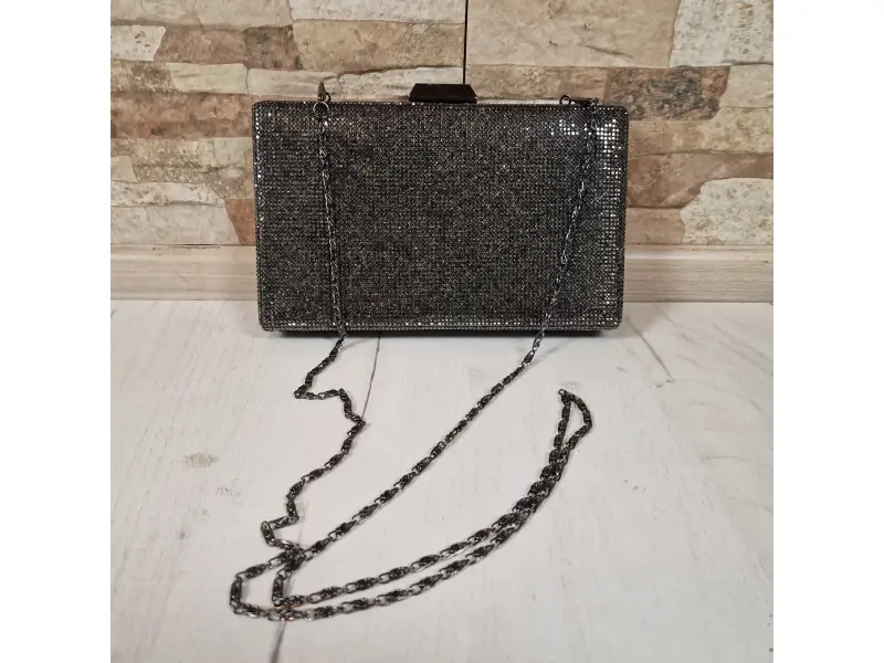Стилна официална чанта - Официална дамска чанта с едно отделение. - Отваряне и затваряне с механизъм. - Метален кант. - Дълга дръжка тип верижка.
