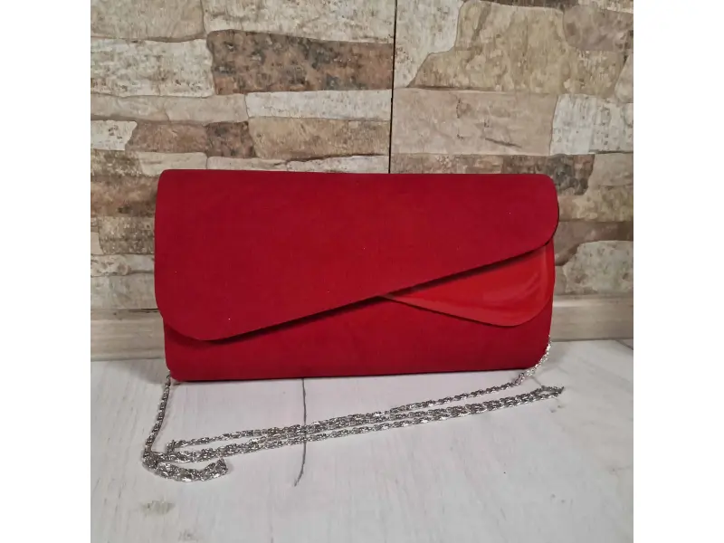 Елегантна малка чанта от велур - Официална дамска чанта с едно отделение. - Отваряне и затваряне с копче тип магнит. - Дълга дръжка тип верижка в сребърен цвят.