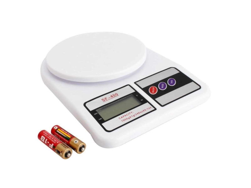 Електронна везна за измерване до 5 кг.Практична и изключително лесна за боравене.Везната работи с две батерии от 1.5 волта, размер АА (включени в комплекта).Бутон за преброяване на различни неща за измерване.