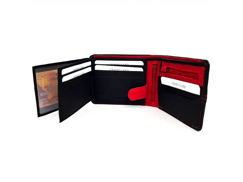 Уникален мъжки портфейл с много слотове за карти и отделения за документи. Мека на допир натурална естествена кожа. Мъжки портмоне с отделение за монети затварящо се с цип.