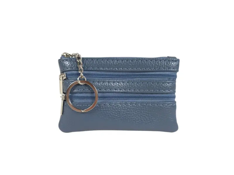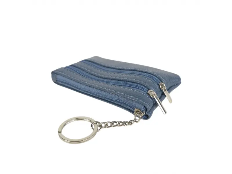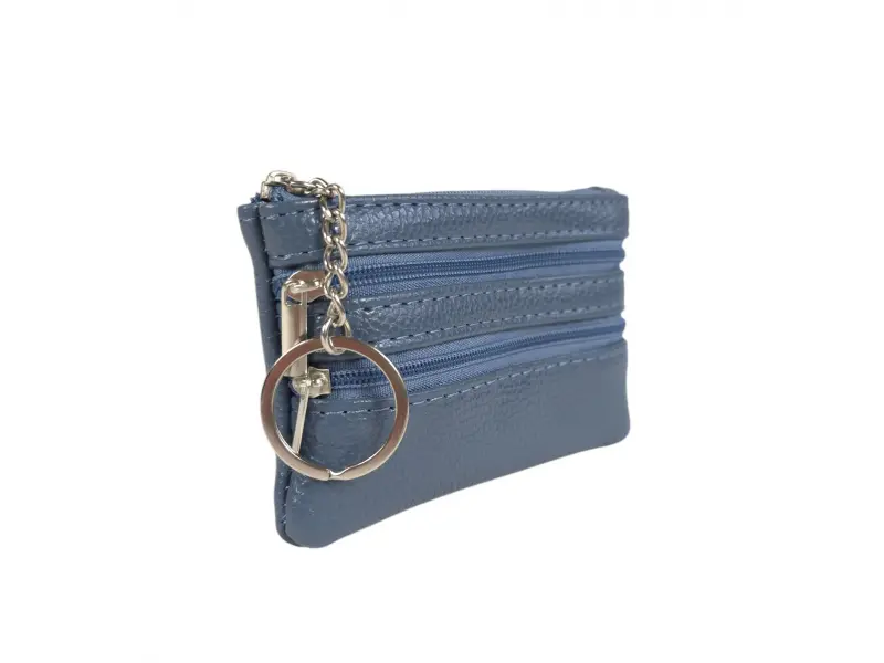 Кожен ключодържател в син цвят - Портмоне - ключодържател от естествена кожа. - Отделение за банкноти. - Две отделения за монети. - Ринг за закачане на ключове.