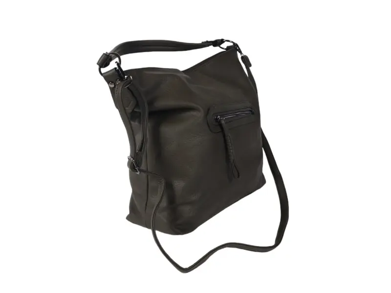 Голяма дамска чанта - Дамска чанта от еко кожа. - Едно основно отделение разделено две. - Вътрешна преграда с цип. - Вътрешно джобче с цип. - Отделения за телефон и документи. - Преден джоб с цип. - Заден джоб с цип. - Удобна дръжка за носене. - Дълга регулираща се дръжка.