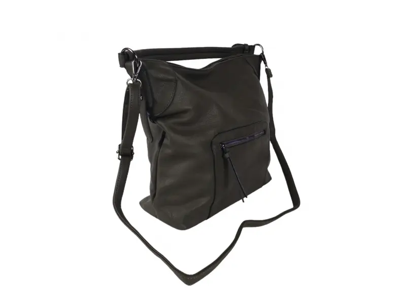 Ежедневна дамска чанта - Дамска чанта от еко кожа. - Едно основно отделение разделено две. - Вътрешна преграда с цип. - Вътрешно джобче с цип. - Отделения за телефон и документи. - Преден джоб с цип. - Заден джоб с цип. - Удобна дръжка за носене. - Дълга регулираща се дръжка.