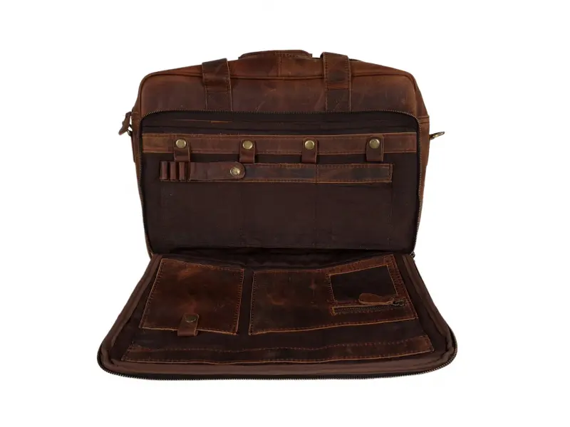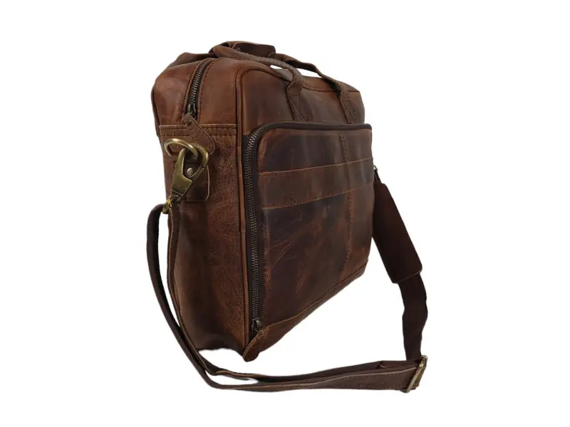 Луксозна мъжка чанта от естествена кожа - Едно основно отделение с цип. - Отделение за лаптоп затварящо се с лепенки . - Вътрешен джоб с цип. - Отделение за телефон. - Отделение за ключове. - Отделение за химикали и моливи. - Отделение за документи. - Преден джоб с много отделения с цип. - Удобни дръжки за носене. - Дълга регулираща се дръжка. - Възможност за закачане на куфар.