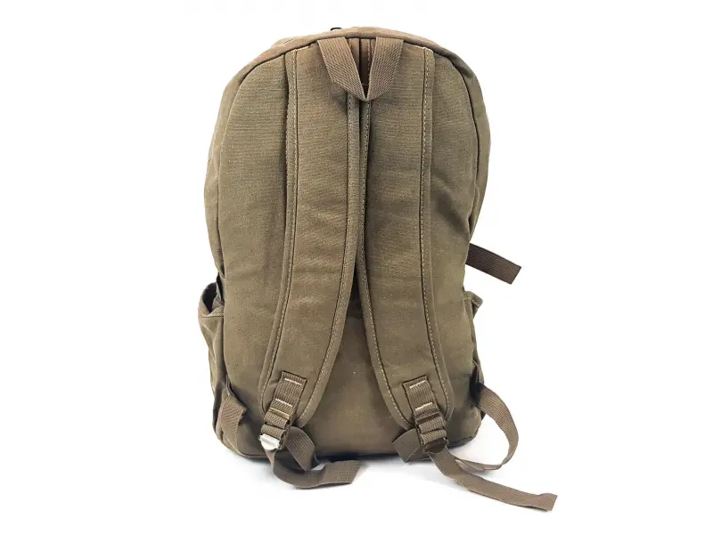 Раницата е изработена от брезент, който е здрав и издръжлив материал.