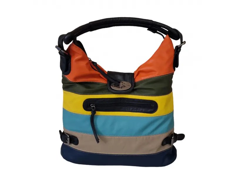 Качествена дамска чанта от варена кожа. Многоцветна дамска чанта с удобни отделения. Красива дамска чанта в голям размер и интересен дизайн.
