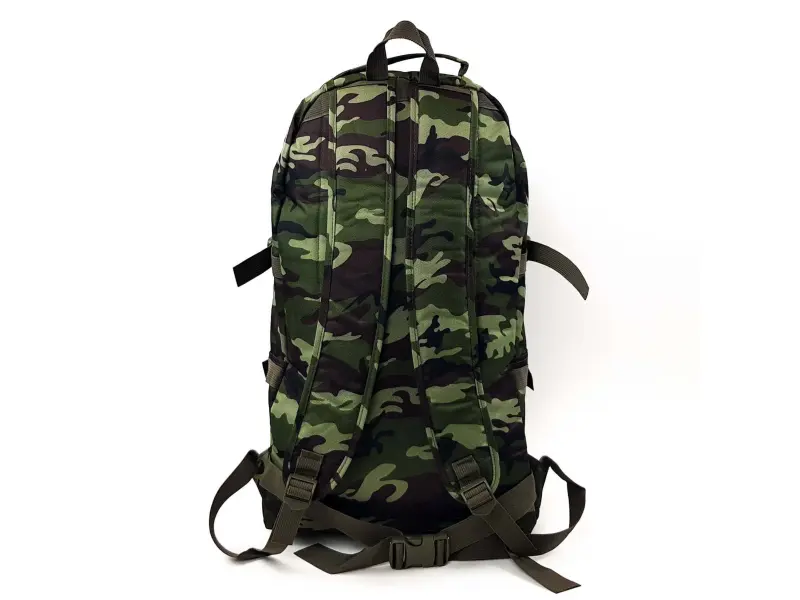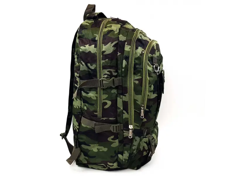 Голяма раница милтари с много отделения , страхотен модел подходящ за излети , лов и риболов. Огромна раница в цвят камуфлаж с регулиращи се презрамки , дръжка за носене и друга за закачане , раница с преден колан пристягащ обема. Камуфлажна раница с отделения за бутилки от двете страни.