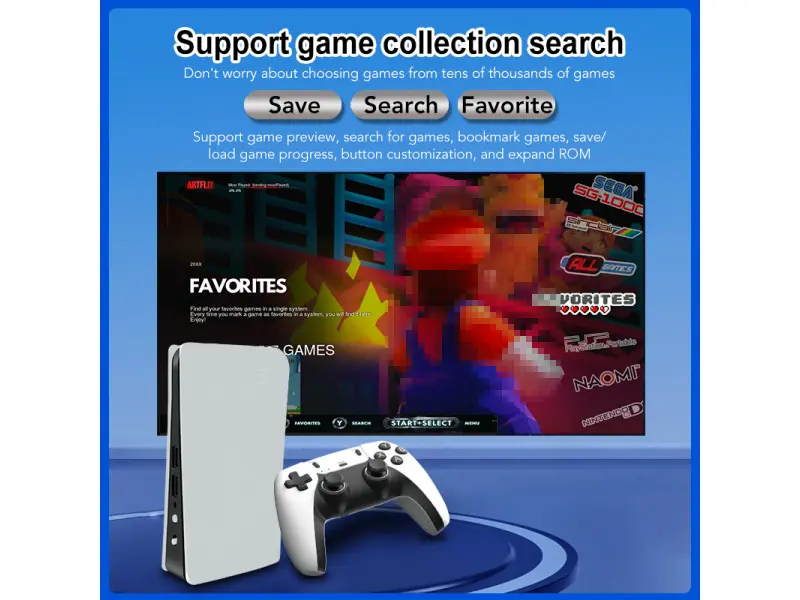 Включени са над 46 000 класически игри от конзоли като PS1, PSP, NES, SNES, Sega, MAME, N64, DreamCast и много други.