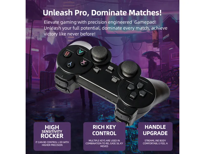 - ✅ Два безжични геймпада – идеални за мултиплейър забавления, състезания и кооперативни игри с деца или гости.
