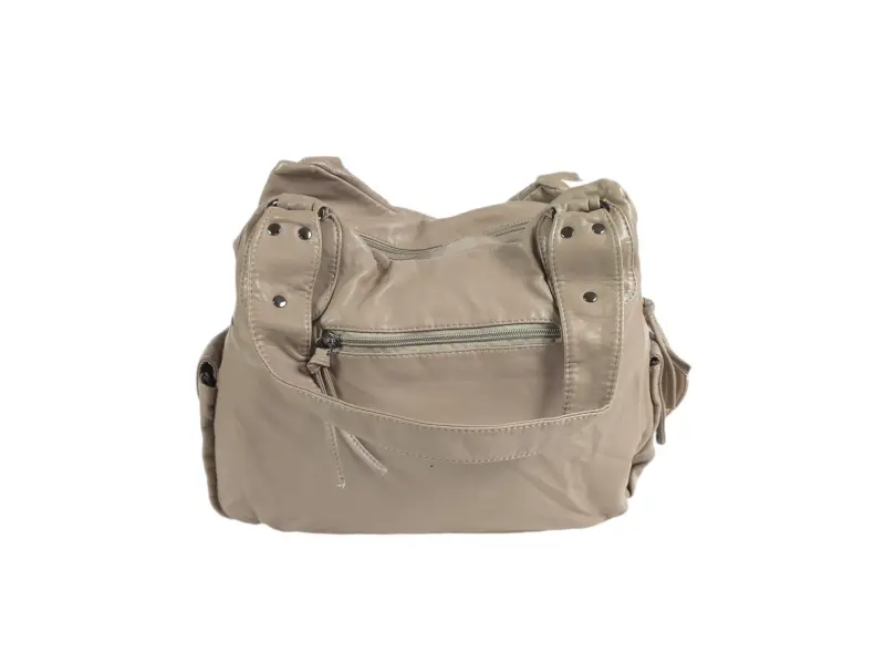 Дамска чанта от варена - Дамска чанта от варена кожа. - Две основни отделения с цип. - Малък вътрешен джоб с цип. - Отделения за телефон и документи. - Два предни джоба с цип. - Заден джоб с цип. - Два странични джоба. - Удобни дръжки за носене.